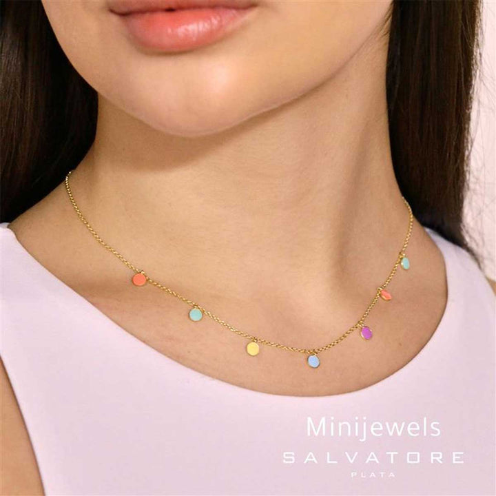 Дамско колие с цветен емайл и златно PVD покритие 18K | Salvatore Plata Minijewels
