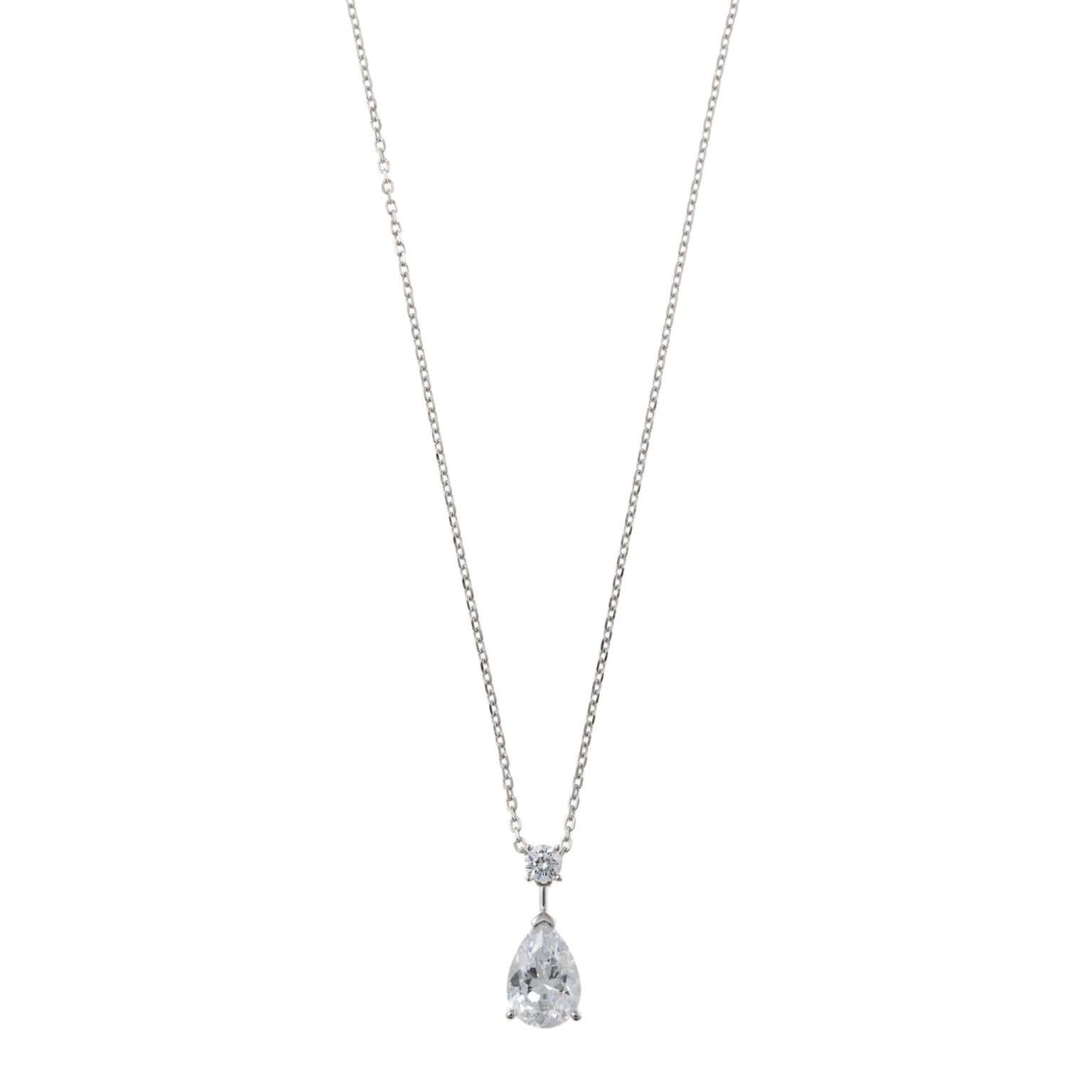 Дамско колие Salvatore Plata Wedding от сребро 925 с родиево покритие и капковиден циркон – изглед отпред.