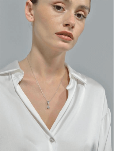 Дамско колие Salvatore Plata Wedding от сребро 925 с родиево покритие и циркони – снимка върху модел.