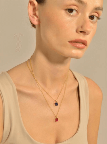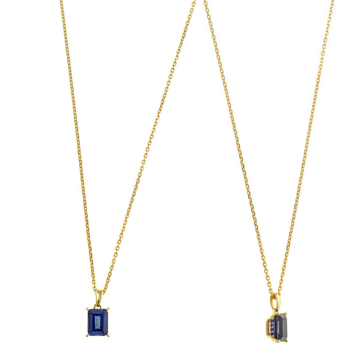 Това елегантно дамско колие е изработено от сребро 925 със златно покритие, което придава изискан и топъл завършек. Висящият син сапфир с правоъгълна фасетирана форма добавя кралско излъчване и изтънченост.
