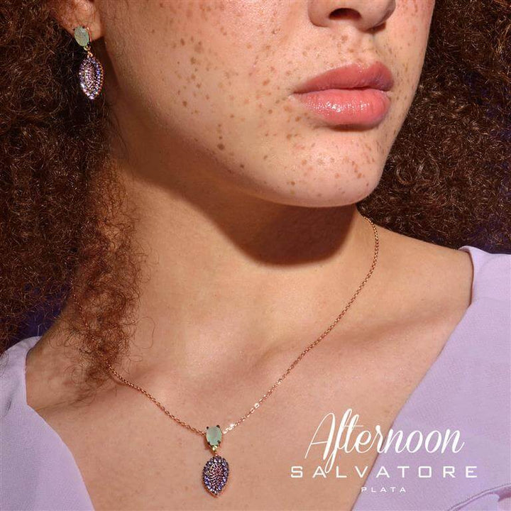 Колие Salvatore Plata Afternoon – сребро с розово златно покритие и инкрустирани многоцветни циркони.