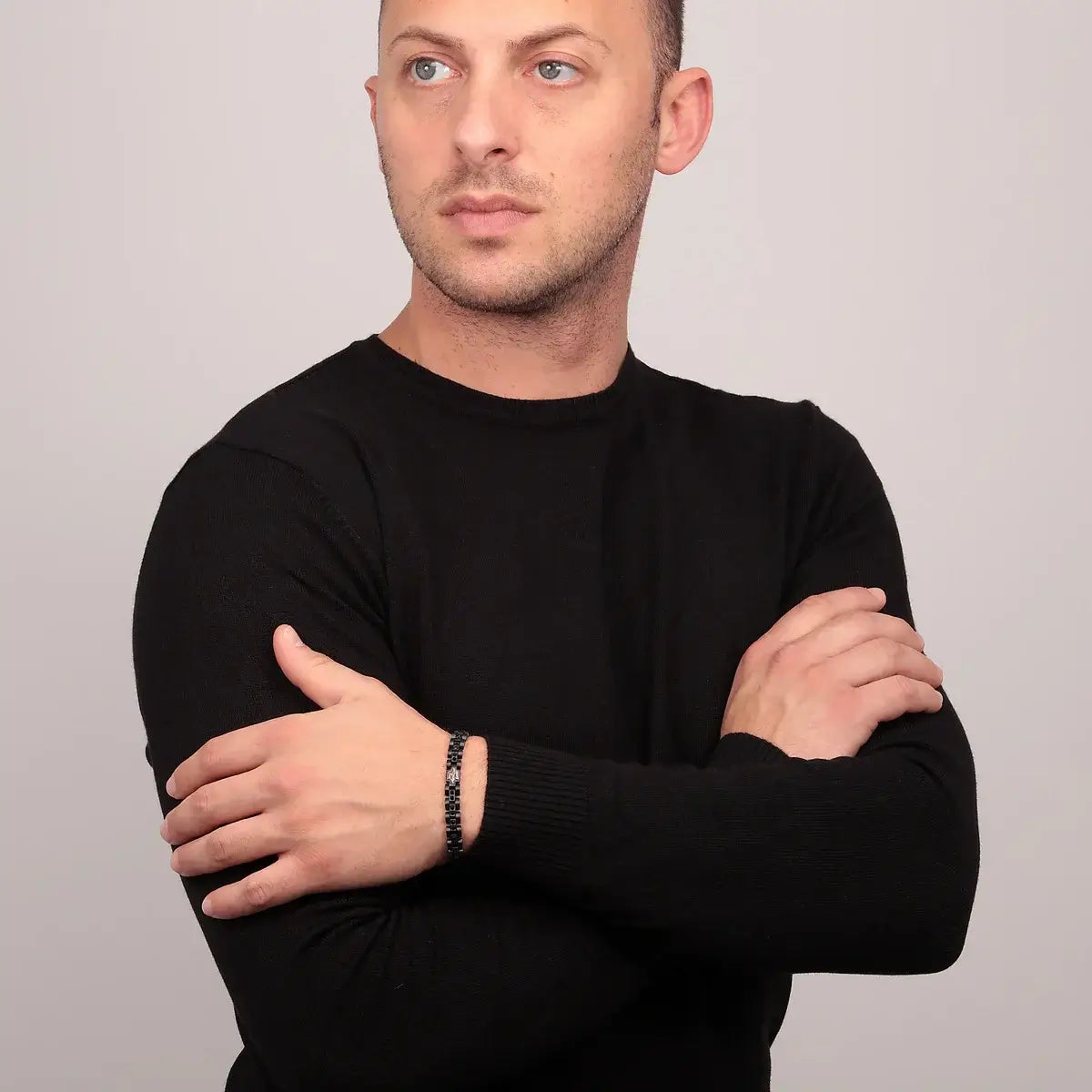 Мъж носи Maserati Iconic – гривна с елегантен и съвременен стил.