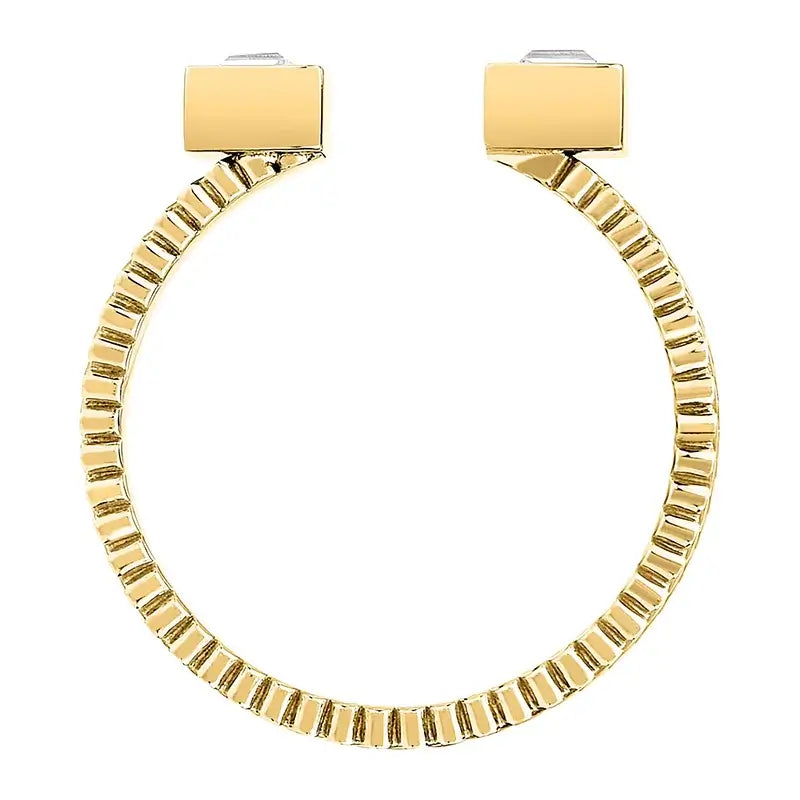 Страничен профил на отворен пръстен със златно PVD покритие и циркони.