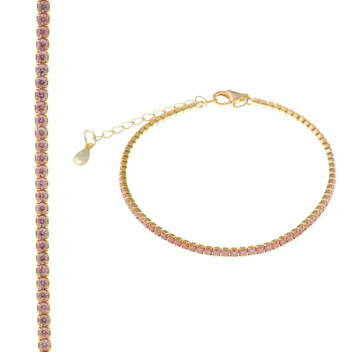 Позлатена сребърна гривна тип ривиера с розови циркони | Blink