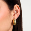 Близък план на овална позлатена халка със златно PVD, върху ухото, SAUP32.