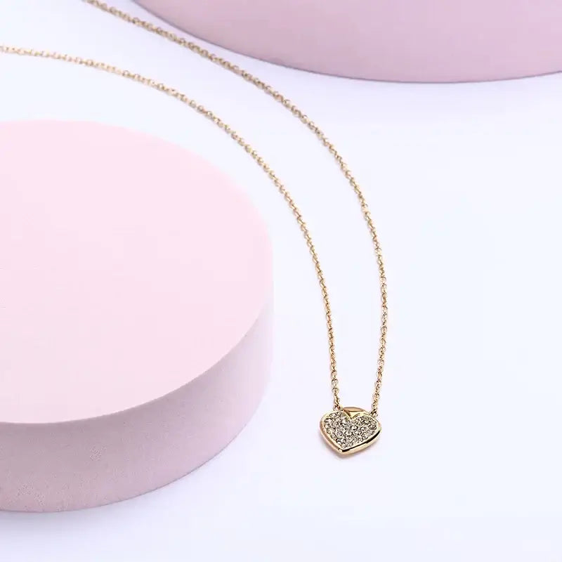 Колие с висулка сърце, обсипана с кристали, жълтозлатист цвят – студио.