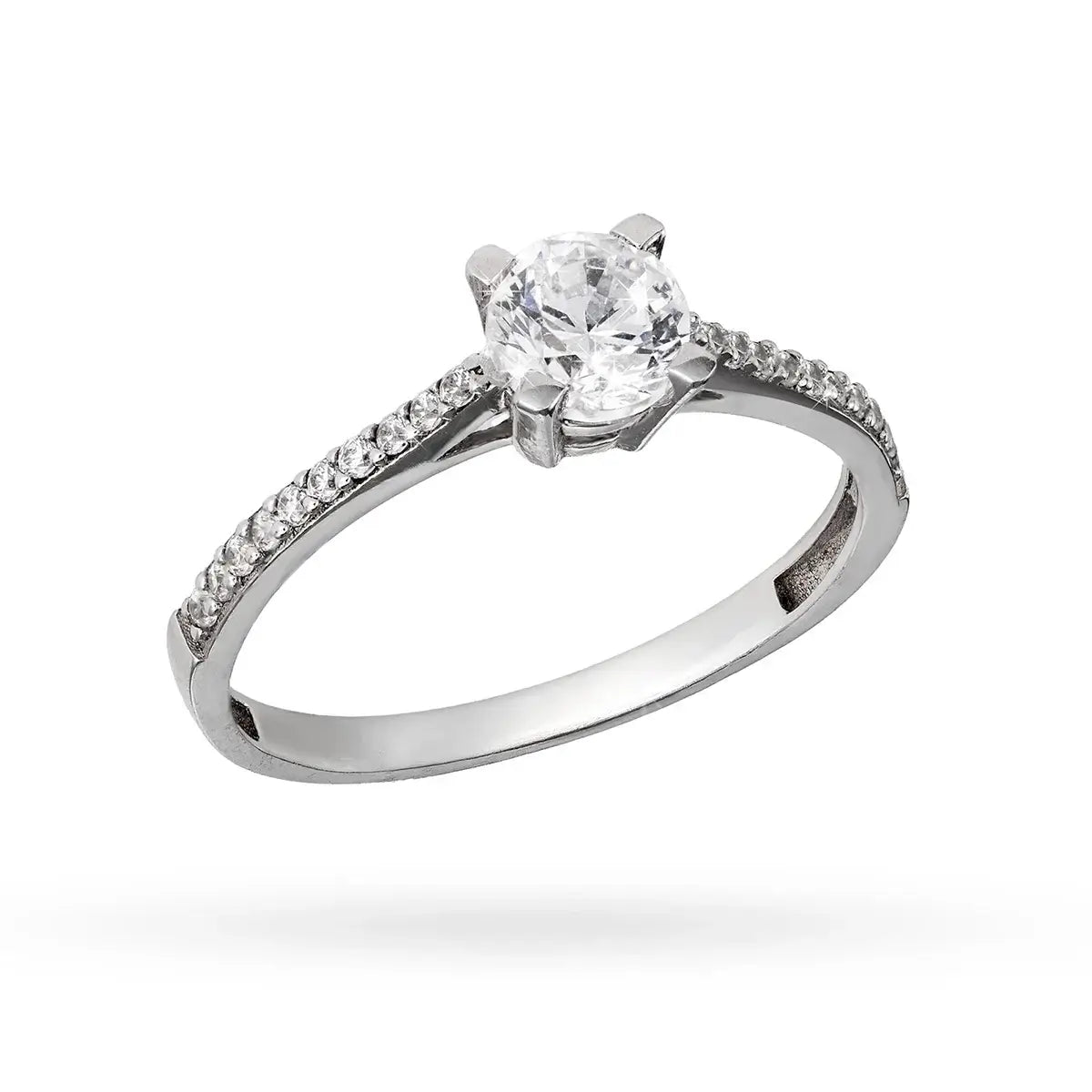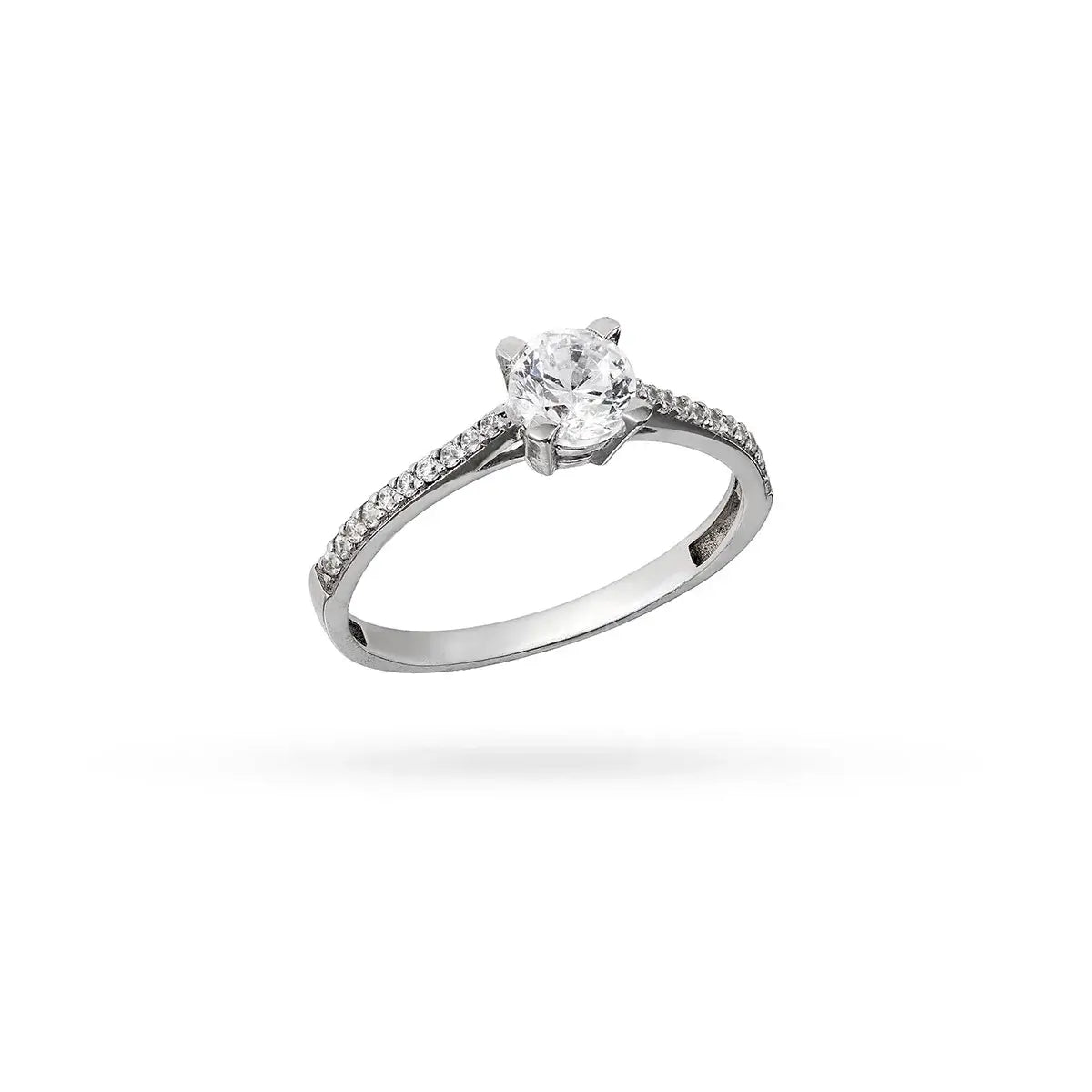 Пръстен от бяло злато с централен циркон и инкрустирана халка | Senso Gold
