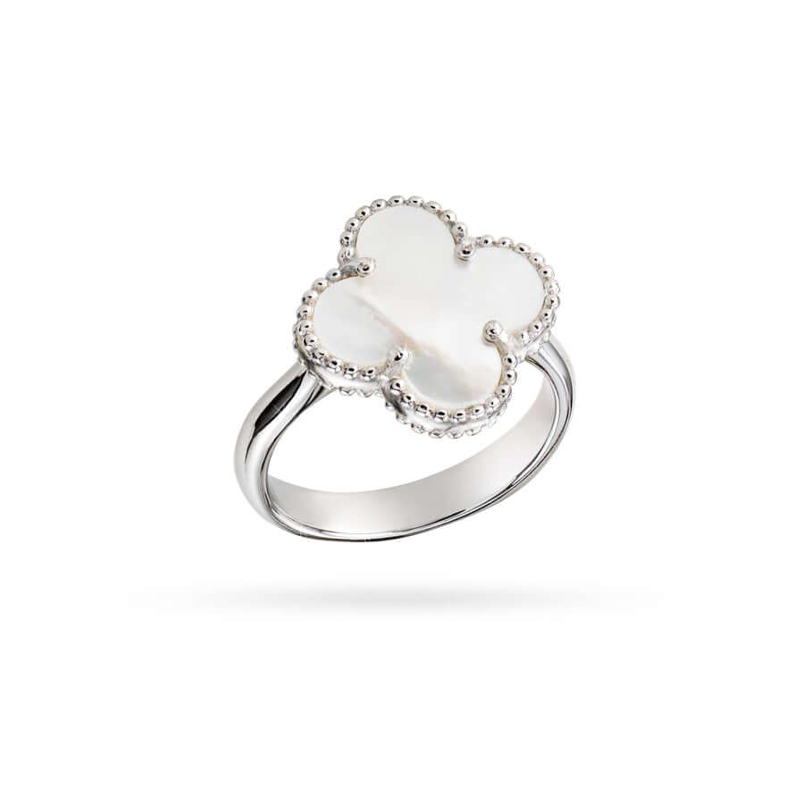 Елегантен и стилен, този дамска пръстен е изработен от висококачествено сребро 925 с родирво покритие и инкрустирана детелина от Седеф. Перфектен избор за ежедневна визия или специални поводи.