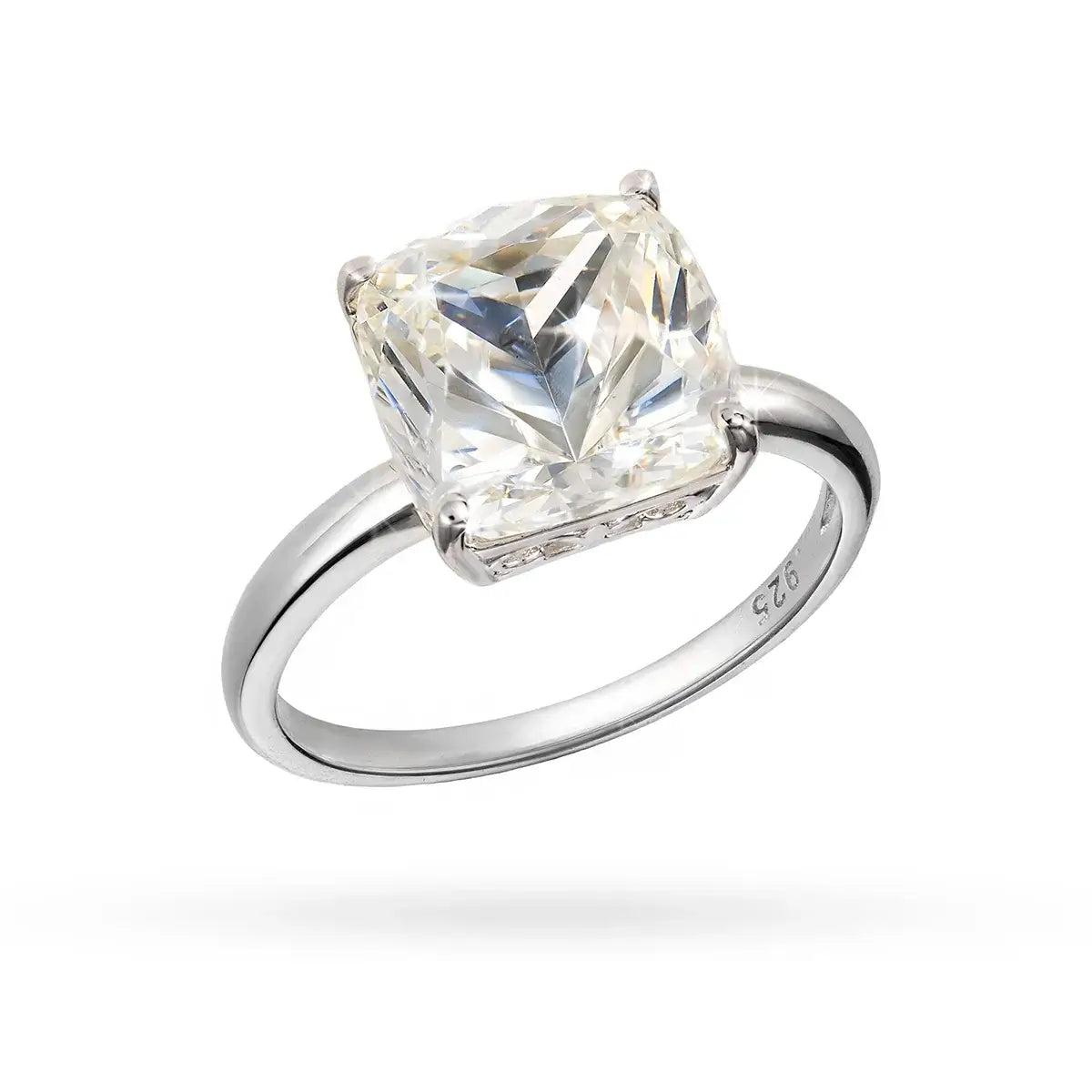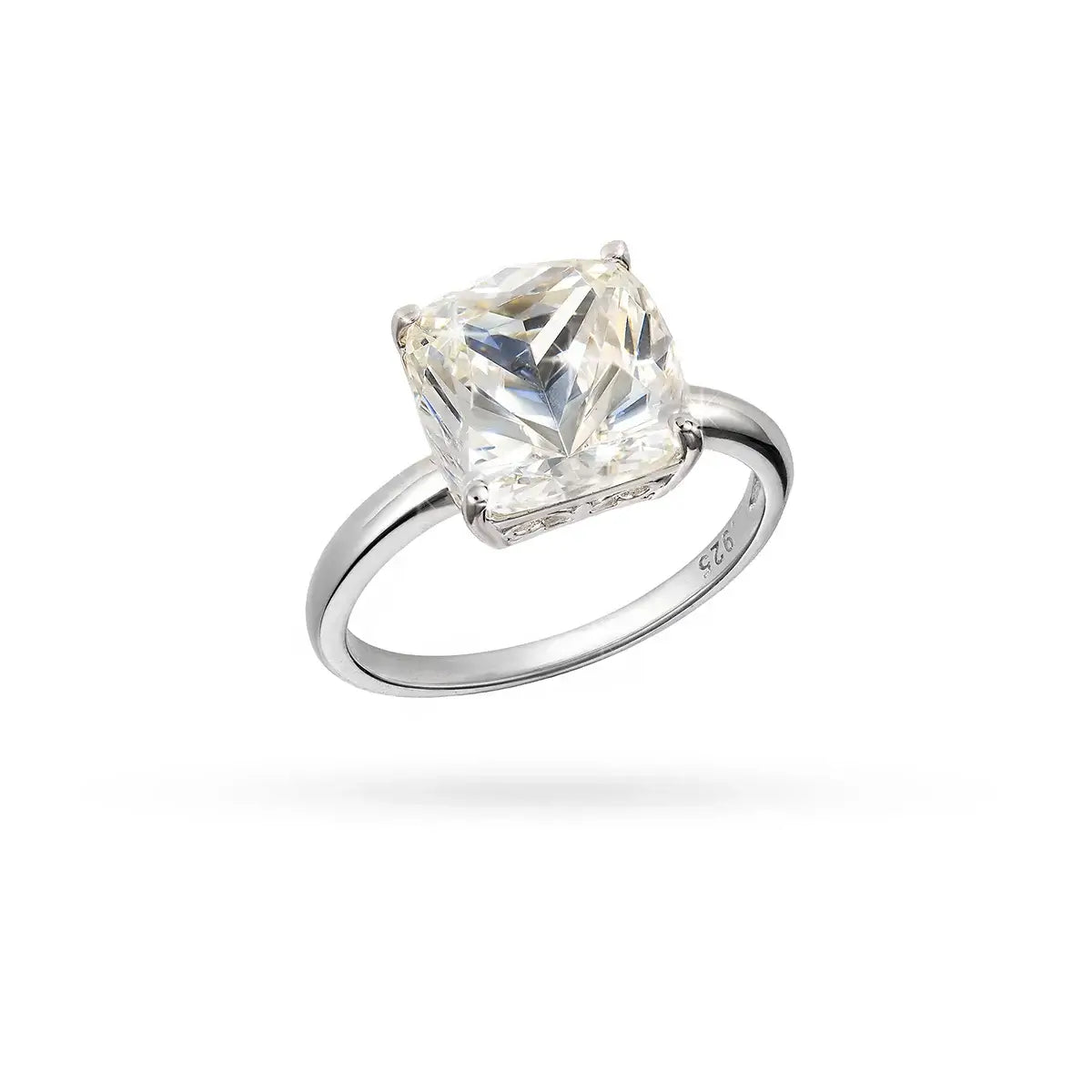 Сребърен пръстен с голям квадратен циркон и родиево покритие | Senso Silver