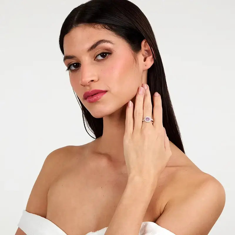 Сребърен пръстен „ореол“ с розов циркон | Morellato