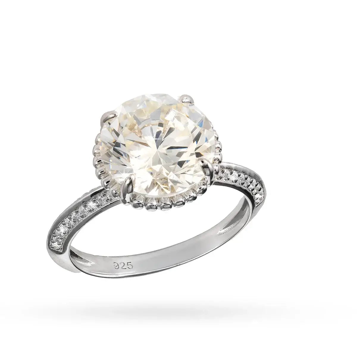 Сребърен пръстен с голям централен циркон и pavé инкрустация | Senso Silver
