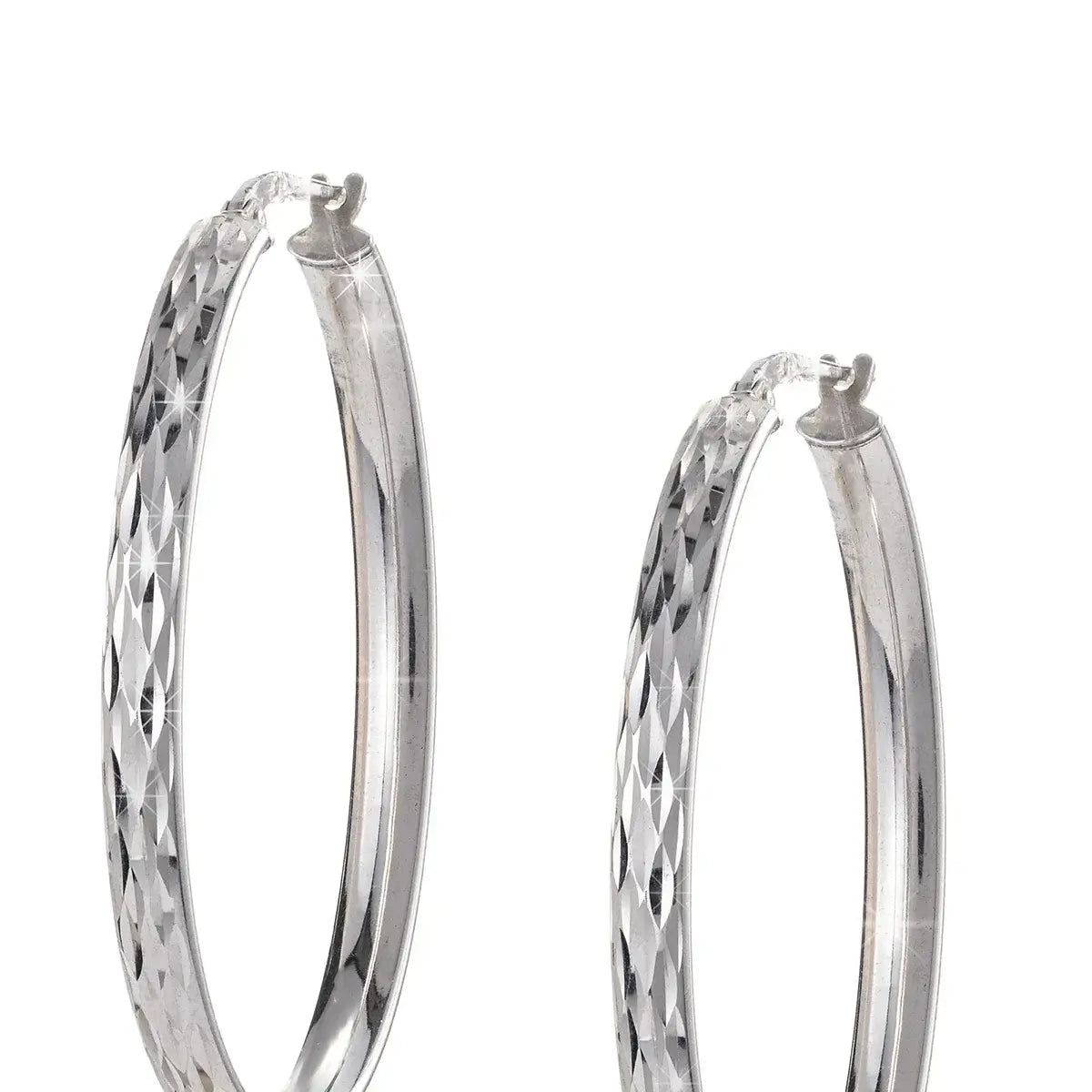 Сребърни обеци халки с родиево покритие и луксозен блясък 4см | Senso Silver