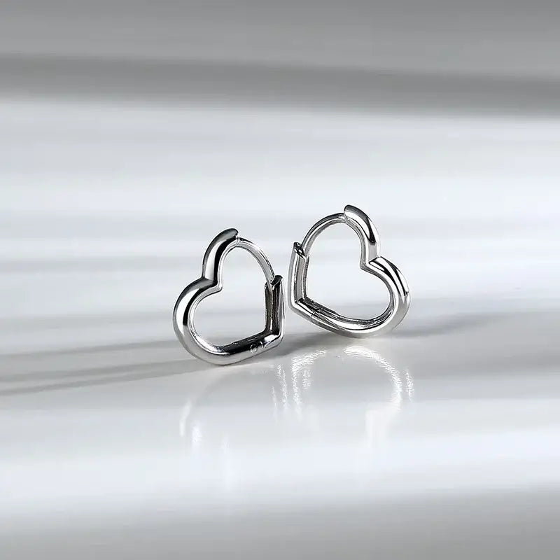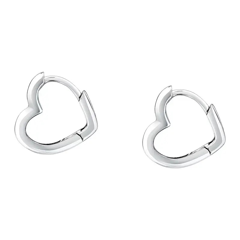 Сребърни обеци халки „сърце“ 1.4 см от сребро 925 с родиево покритие, студиен кадър на чифта.