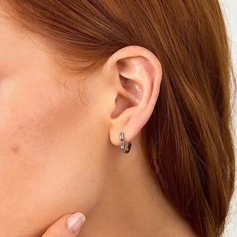 Минималистични обеци халки Morellato Tesori с нежна форма „сърце“ и огледален блясък. Изработени са от рециклирано сребро 925 с родиево покритие, което предпазва от потъмняване и запазва гладката повърхност. Компактният размер 1.4 см стои дискретно и е удобен за ежедневно носене, включително в комбинация с други пиърсинги. Закопчаването е тип hinged (щракващо), за стабилност и лесно поставяне. Лек и универсален модел за модерен сребрист сет.