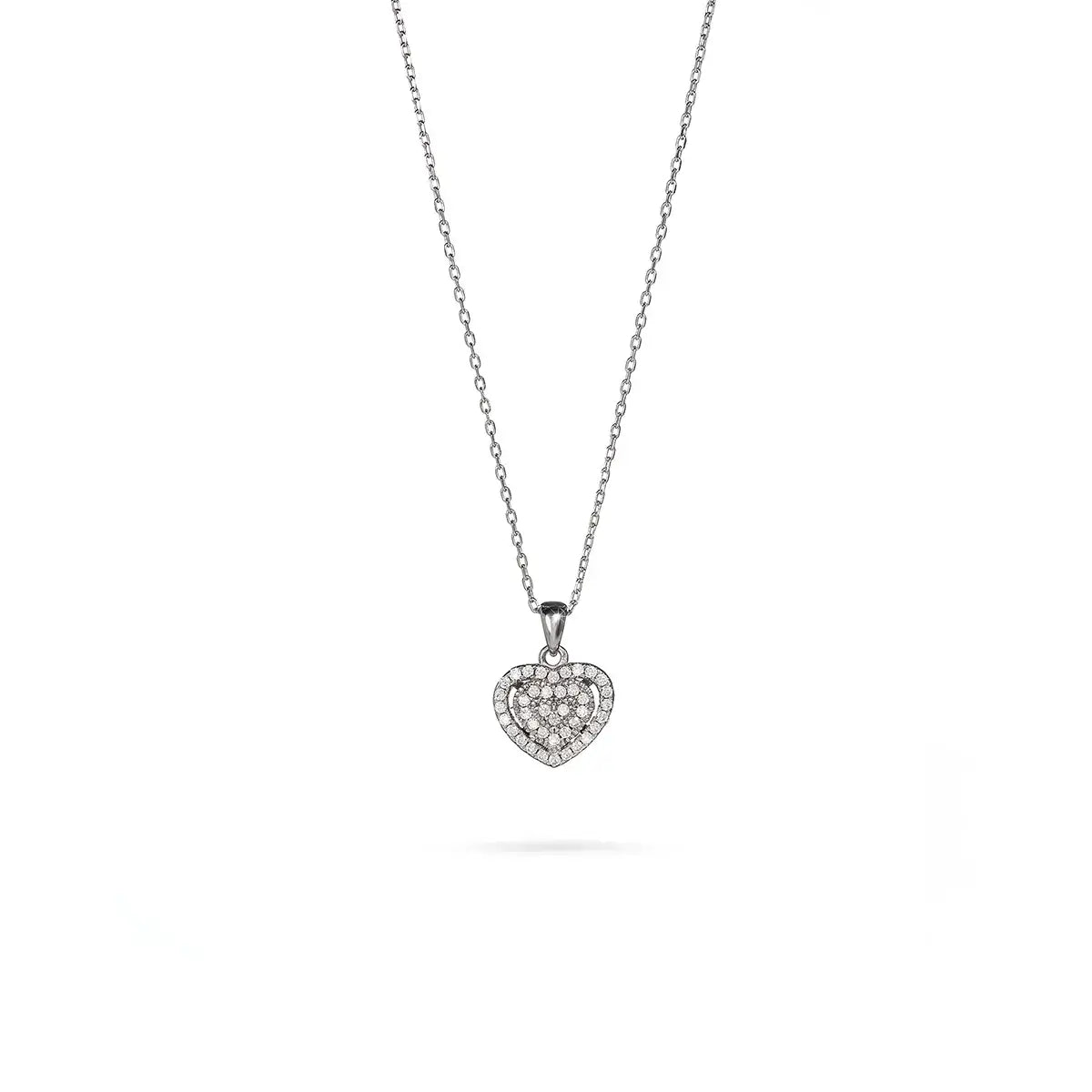 Сребърно колие сърце с циркони и родиево покритие | Senso Silver