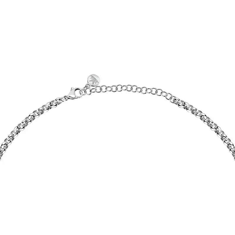 Минималистично колие Morellato Design с елегантна верига и висулка „капка“, покрита с бели кристали за фин, равномерен блясък. Основата е от неръждаема стомана – устойчива, хипоалергенна и запазваща огледалния си финиш при ежедневна употреба. Дължината е 40 см плюс 5 см удължител с карабинка, за да напаснете падането спрямо деколтето. Кристалите са с диаметър Ø1,5 мм и Ø1,3 мм, поставени прецизно по формата на висулката. Универсален сребрист акцент – носи се соло или в сет с обеци „капка“.
