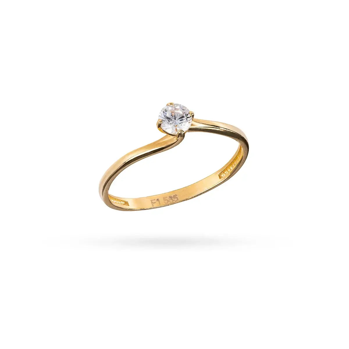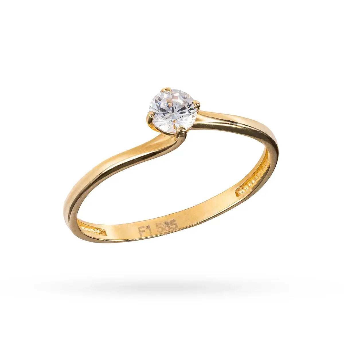 Пръстен от 14-каратово злато с централен циркон и семпъл дизайн