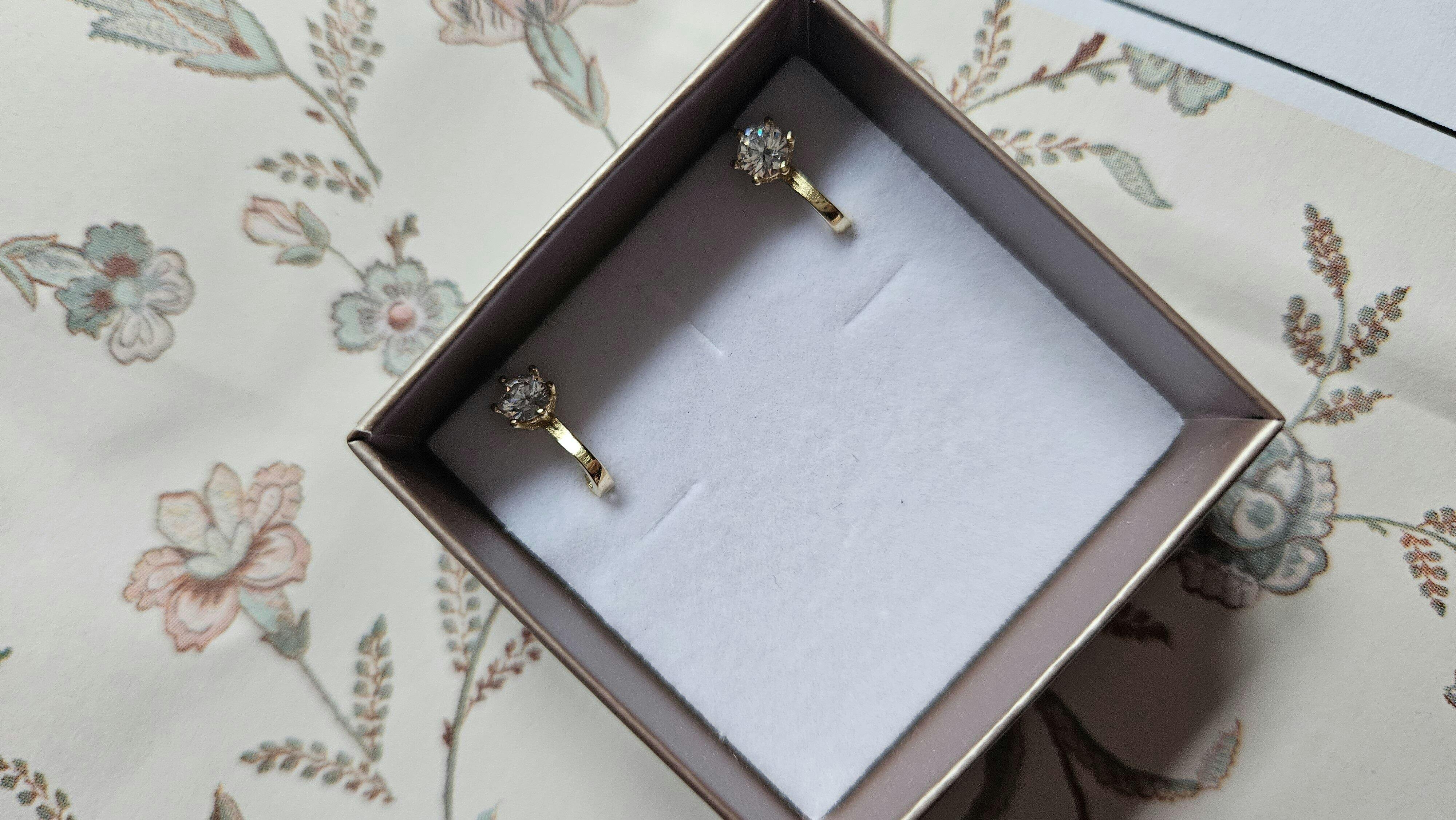 Елегантни дамски златни обеци с централен циркон, изработени от 14-каратово злато. Камъкът е захванат с шест фини зъбчета, което подчертава симетрията и максимизира блясъка на циркона. Моделът съчетава класическа форма с модерно излъчване, подходящ за ежедневна елегантност или като акцент в по-официална визия.