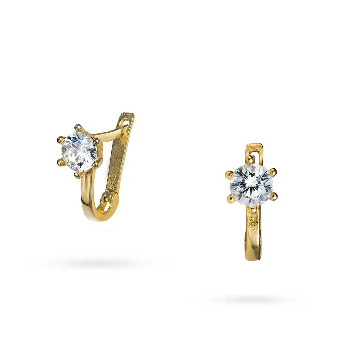 Дамски златни обеци с централен циркон и английска закопчалка | Senso Gold