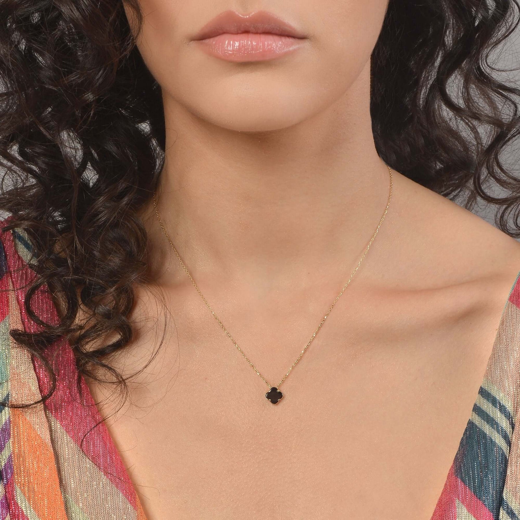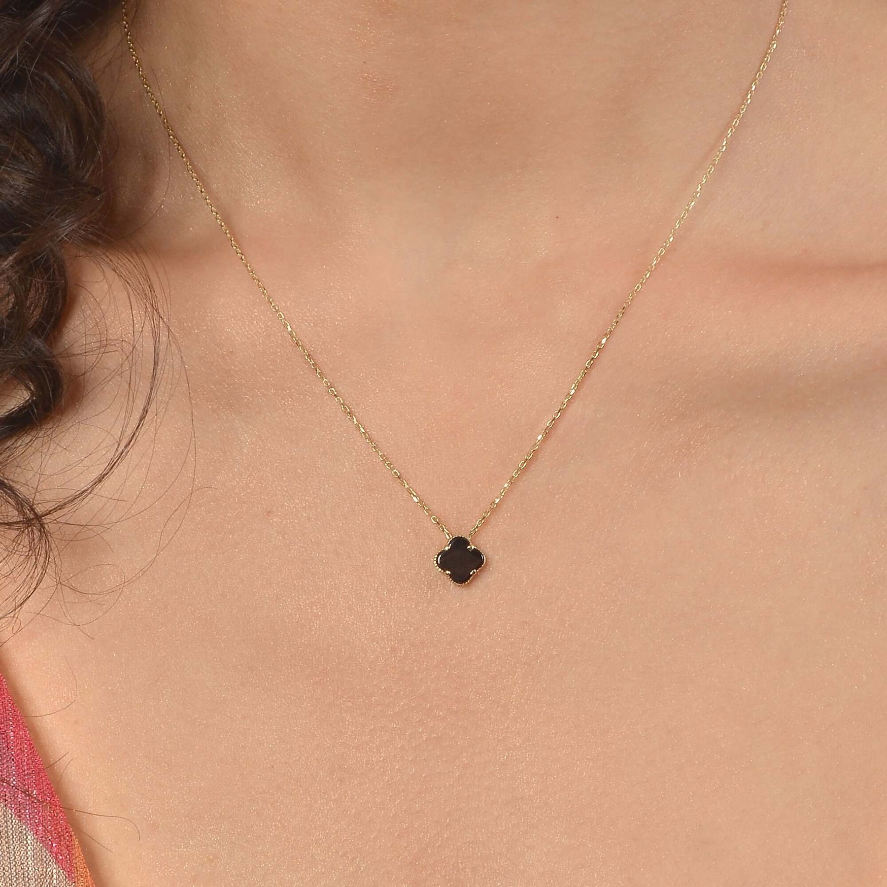 Дамско колие Senso Gold с 14K златна детелина и черен оникс 10 мм