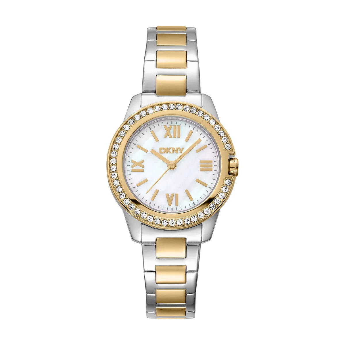 Дамски часовник DKNY Evening, двуцветна стомана, перлен циферблат и кристален безел – часовник DKNY модел DK1L105M0085