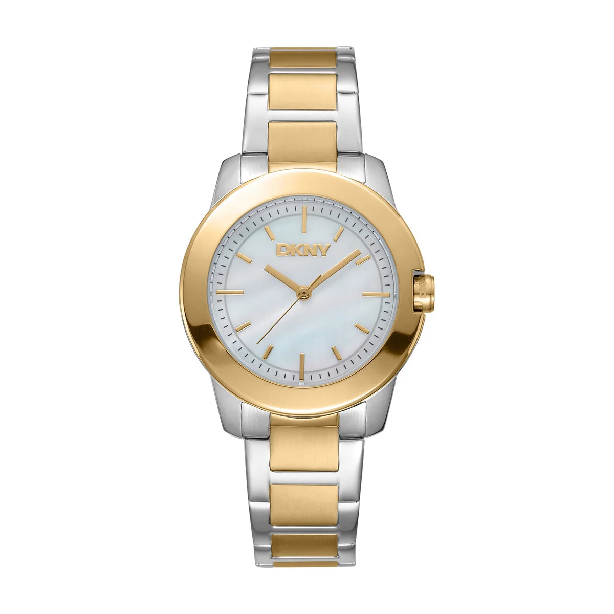 Дамски часовник DKNY – двуцветна стомана, бял седефен циферблат (MOP) и стоманена верижка, часовник DKNY модел DK1L020M0065