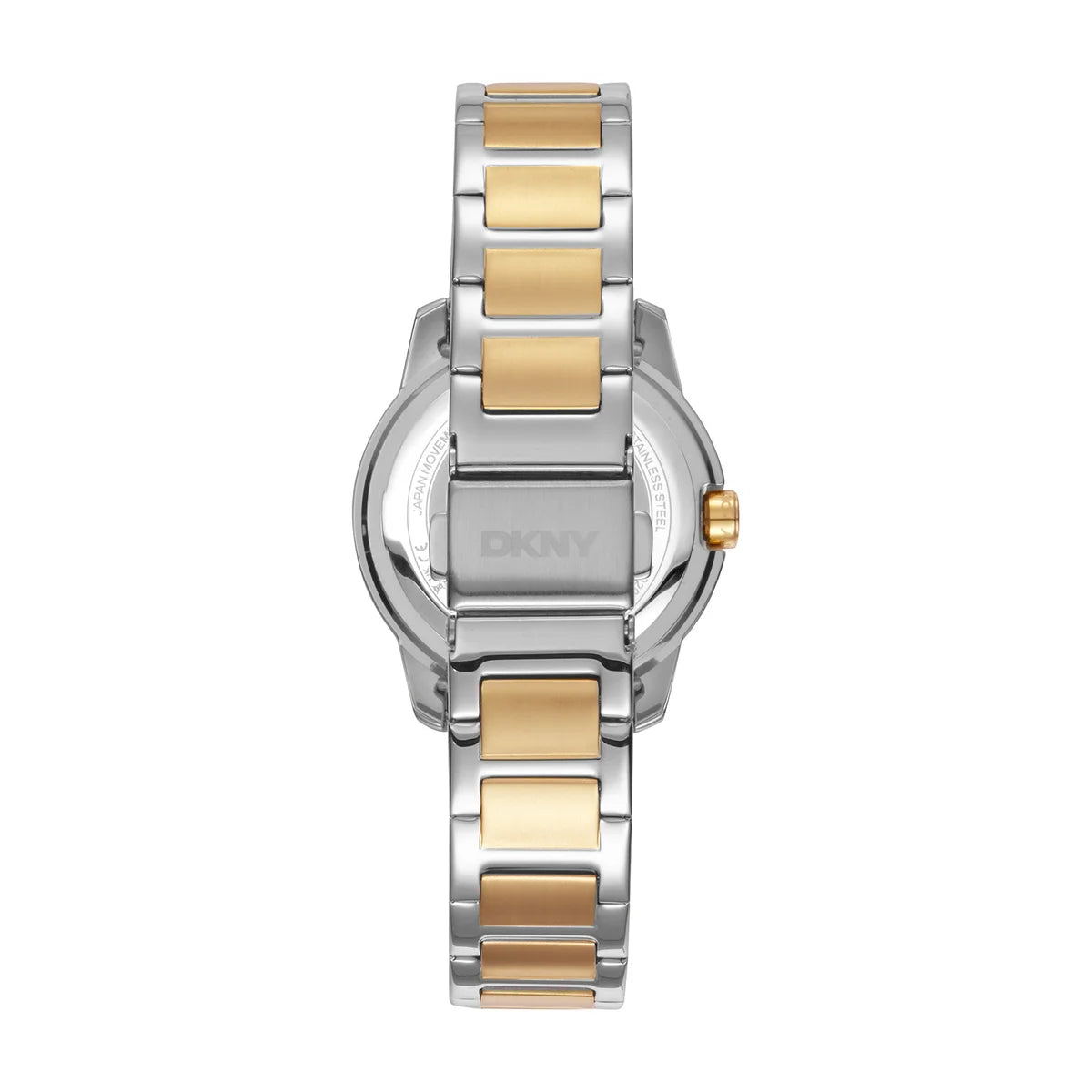 Профил на дамски часовник DKNY – двуцветен корпус с IP покритие и тънък профил ~8 мм, модел DK1L020M0065