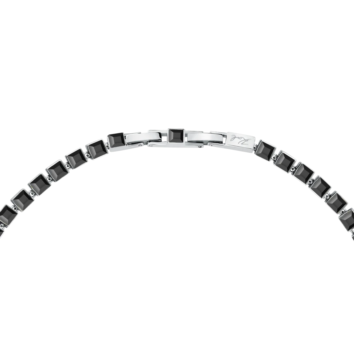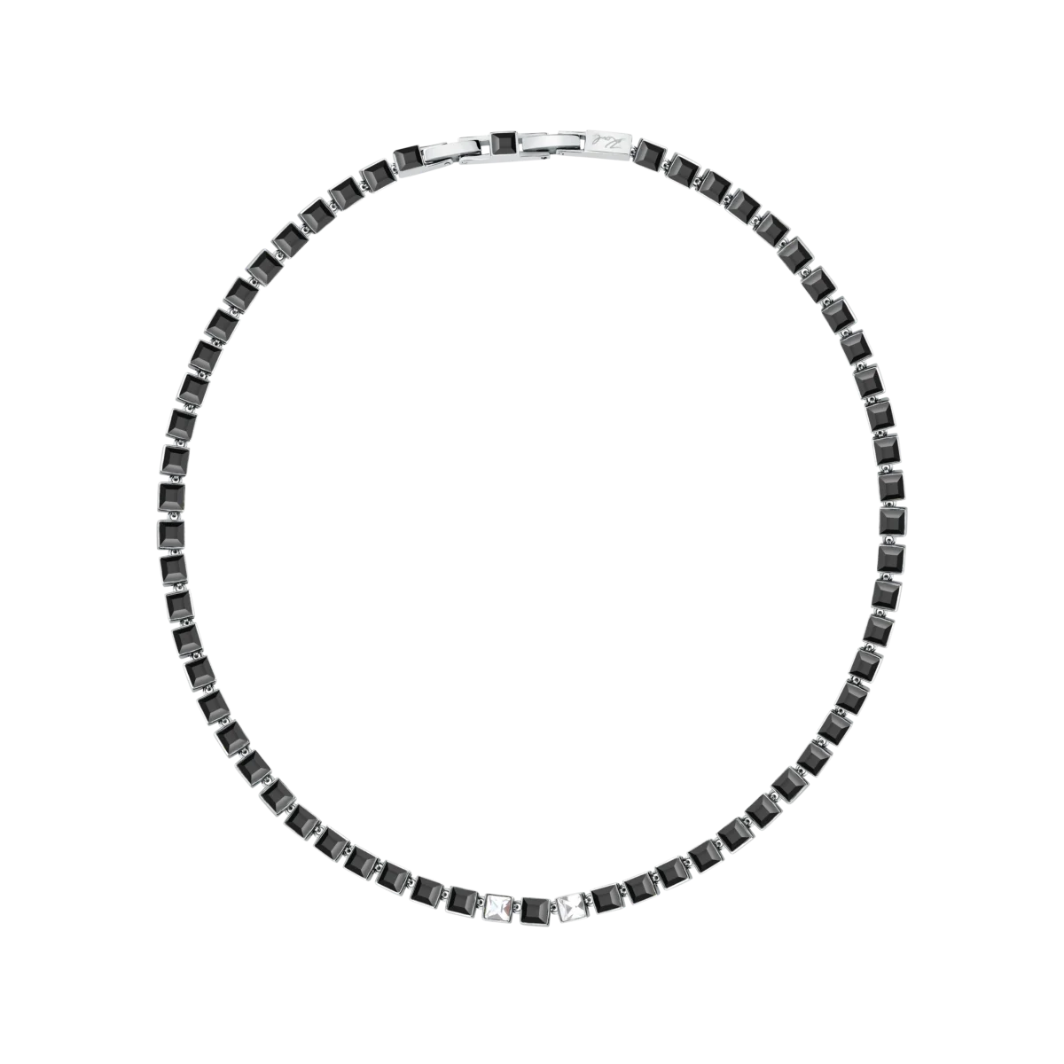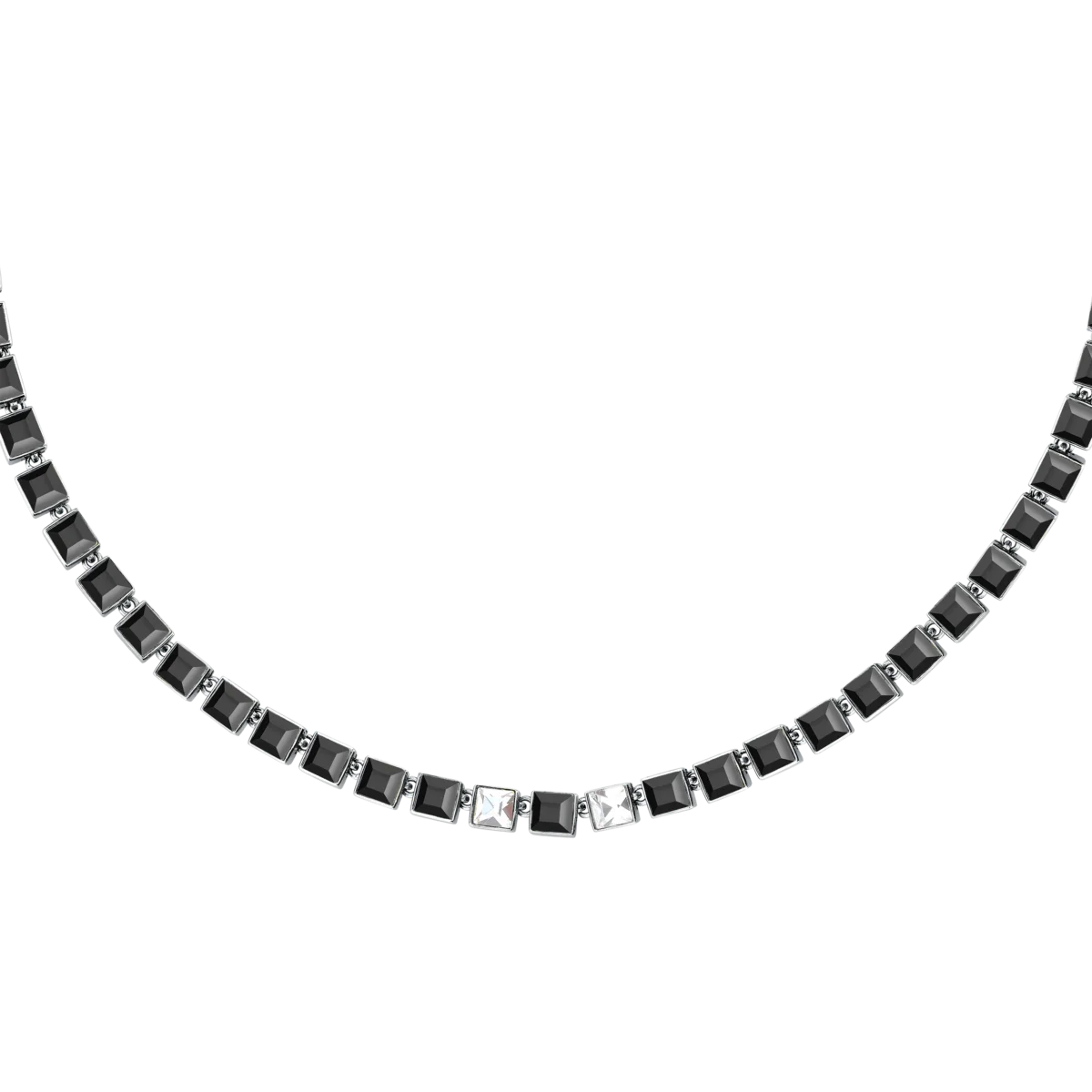 Дамско колие Karl Lagerfeld Crystals KLAYC05 е минималистично тенис колие с ярко изразен рок-шик характер. Цялата линия е изградена от малки квадратни черни кристали, които обгръщат шията като фина лента светлина. В централната част са вградени няколко прозрачни бели кристала, които създават деликатен контраст и подчертават формата на колието.
