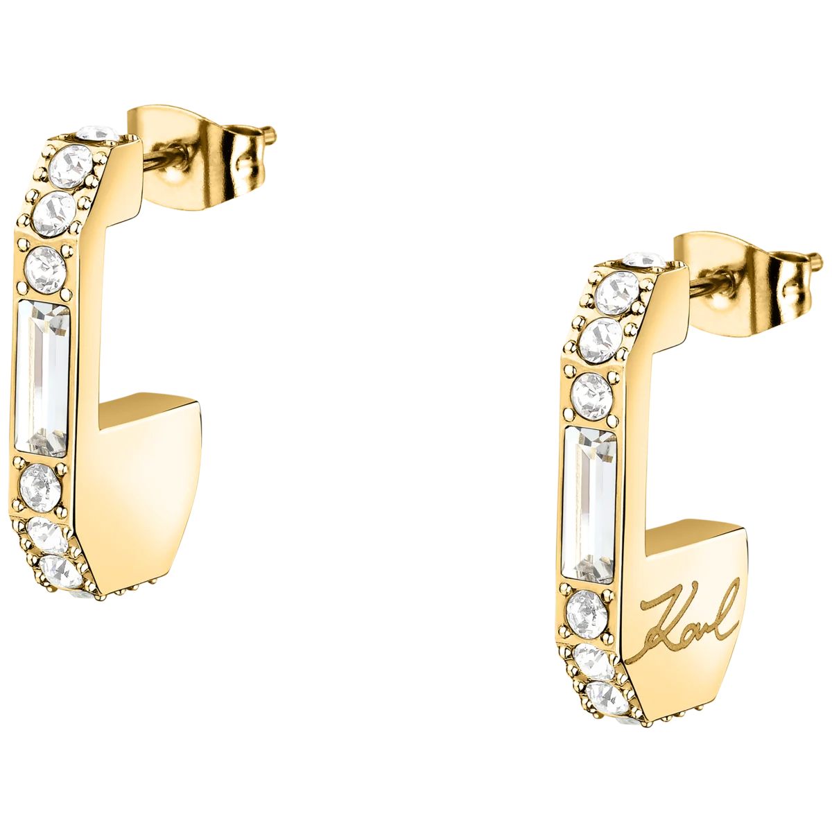 Профил на златисти обеци Karl Lagerfeld Crystals с гравиран подпис Karl – модел KLAYC35