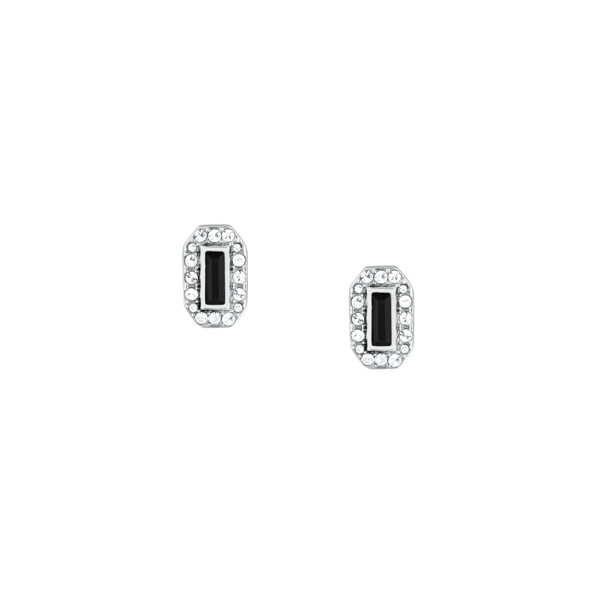 В центъра на всяка обеца стои издължен черен правоъгълен елемент, обграден от ореол от прозрачни кристали, които улавят светлината при всяко движение. Полирана неръждаема стомана в сребрист тон подчертава графичния дизайн и придава модерен, градски характер – емблематичен за стила на Karl Lagerfeld.