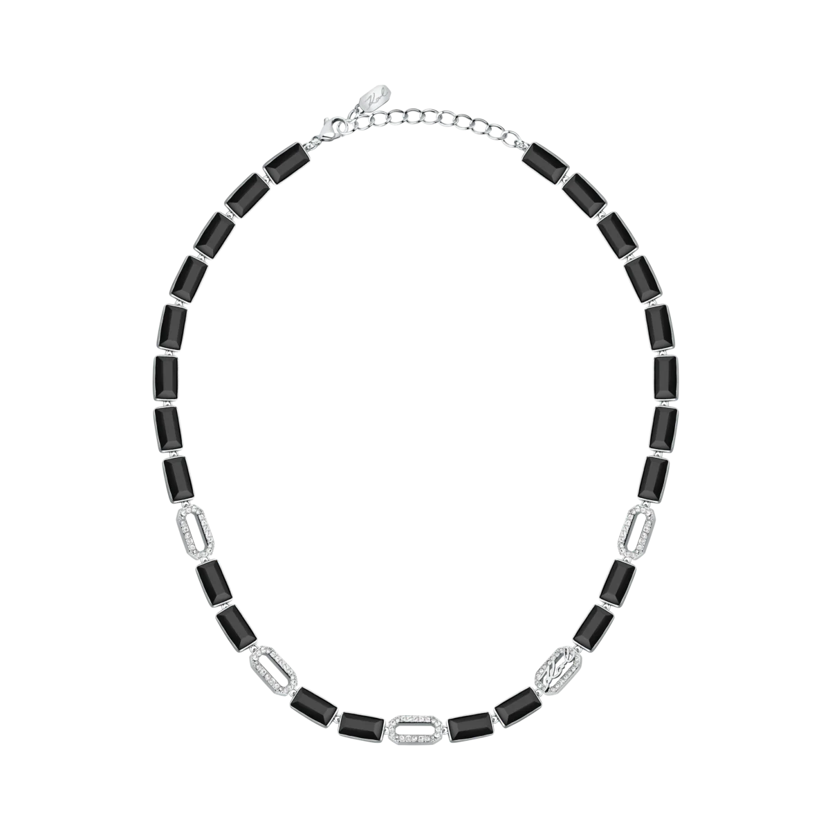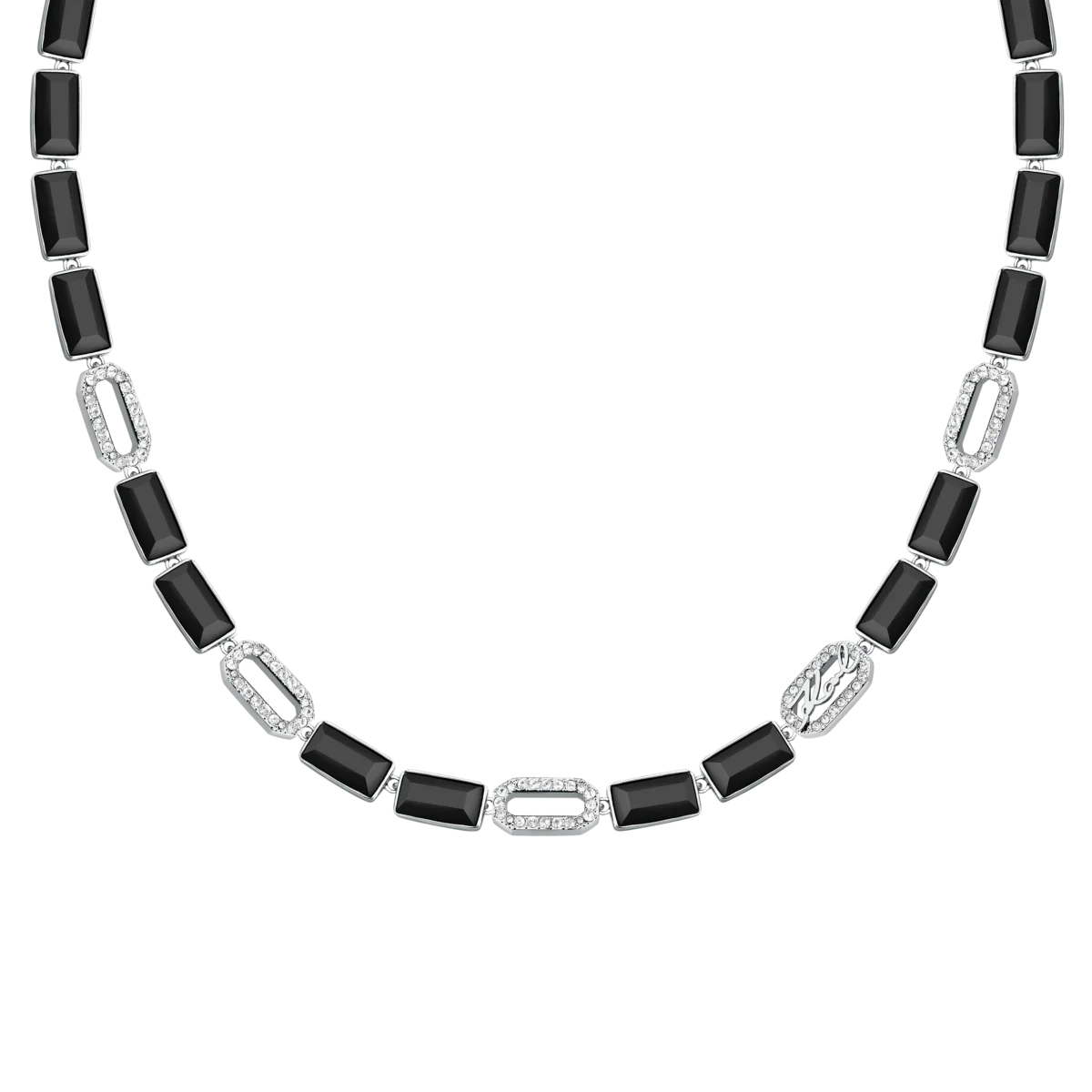 Това дамско колие от неръждаема стомана с черни и бели кристали е идеално за специални поводи, коктейли и официални събития, но е достатъчно универсално, за да се носи и като силен акцент в ежедневния стил. Предлага се в оригинална кутия Karl Lagerfeld, готово за подарък.