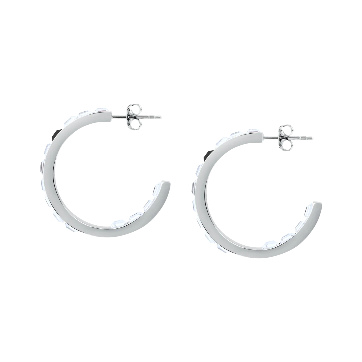 Дамски обеци Karl Lagerfeld Crystals, кръгли халки със серия квадратни бели кристали и черен акцент – модел KLAYC36