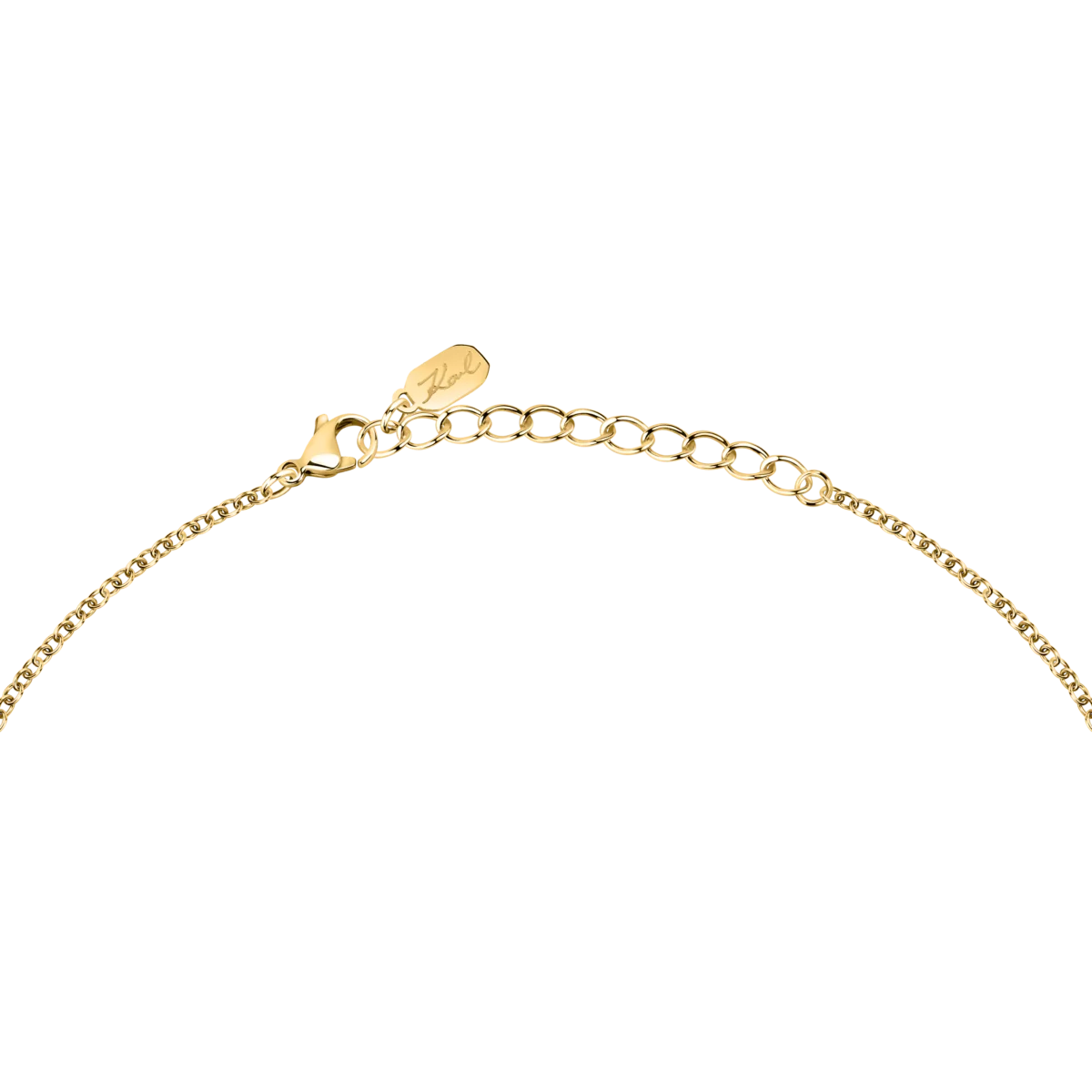Дължината на колието е 40 см с допълнителен удължител 5 см, така че лесно да нагласите накита от по-къс чокър до класическа дължина според деколтето. Закопчаването тип карабинка е сигурно и удобно за ежедневна употреба, а малката пластина с гравиран подпис „Karl“ в задната част напомня за дизайнерския произход на бижуто.