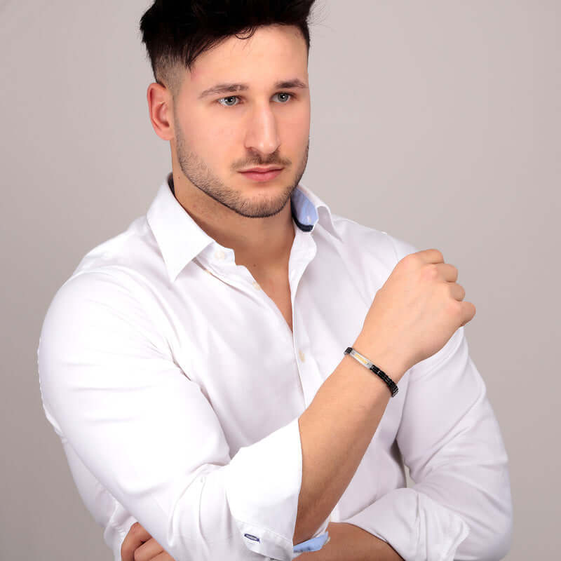 Creată pentru bărbatul care iubește designul modern și materialele rezistente, această brățară combină ceramică high-tech cu oțel inoxidabil lustruit și diamant incrustat. Liniile clare și contrastul dintre elemente conferă o senzație de putere, stabilitate și încredere.